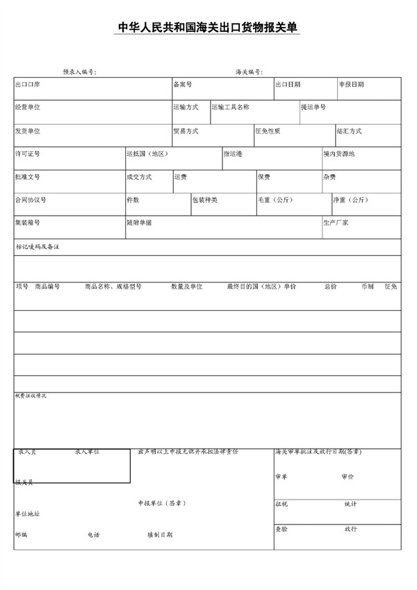 報(bào)關(guān)單 Customs Declaration